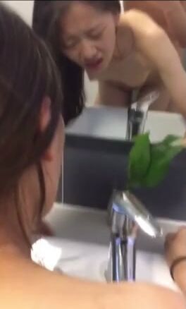 在洗手間的鏡子麵前幹微乳排骨妹