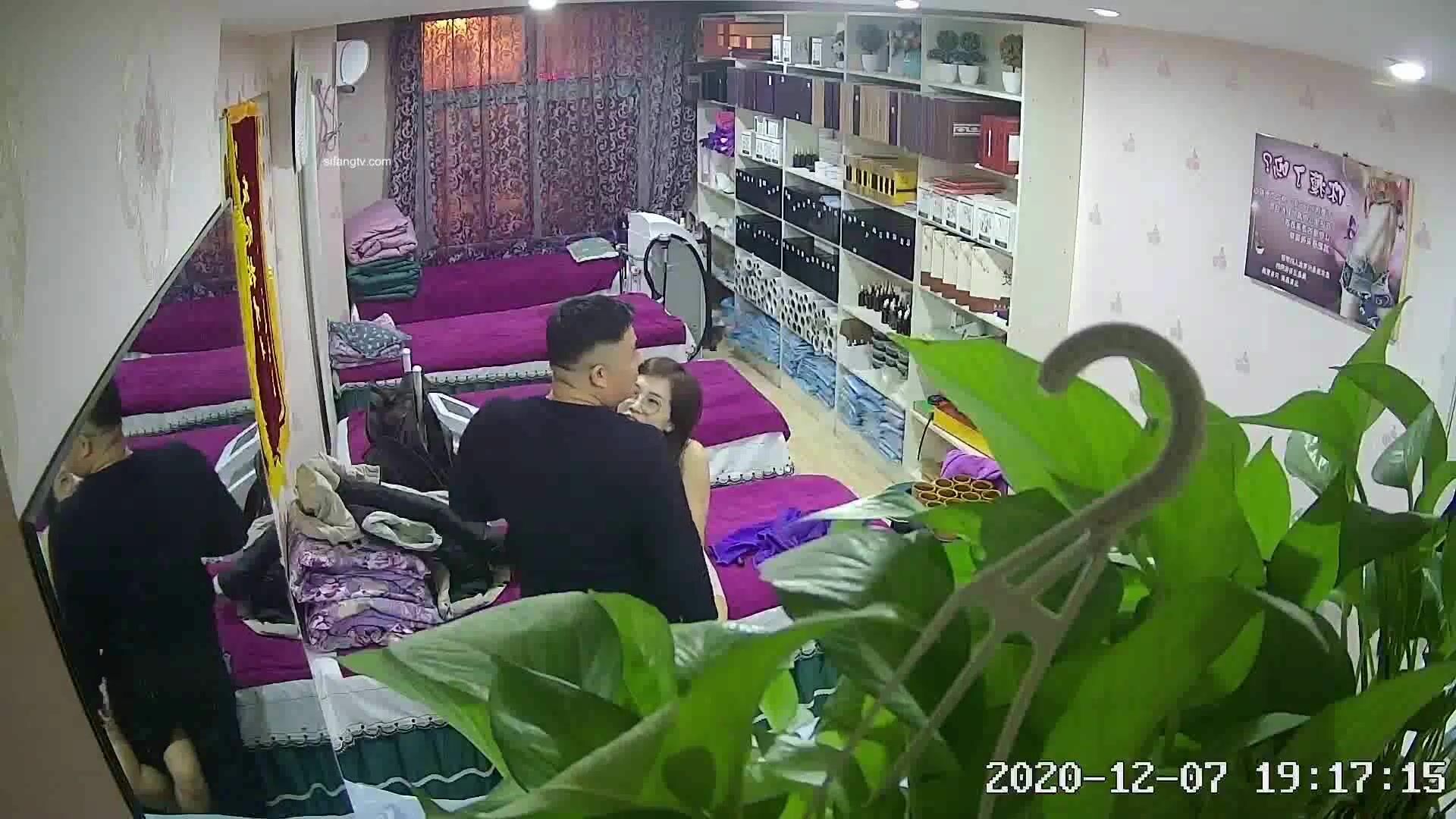 真實偸拍 美容院打烊後眼鏡老板娘約炮情夫 騷婊太主動飢渴了